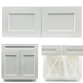 • Modern Modular Shake White Kitchen Cabinet Free Customization Quick Delivery Handleless Design with Lacquer Finish